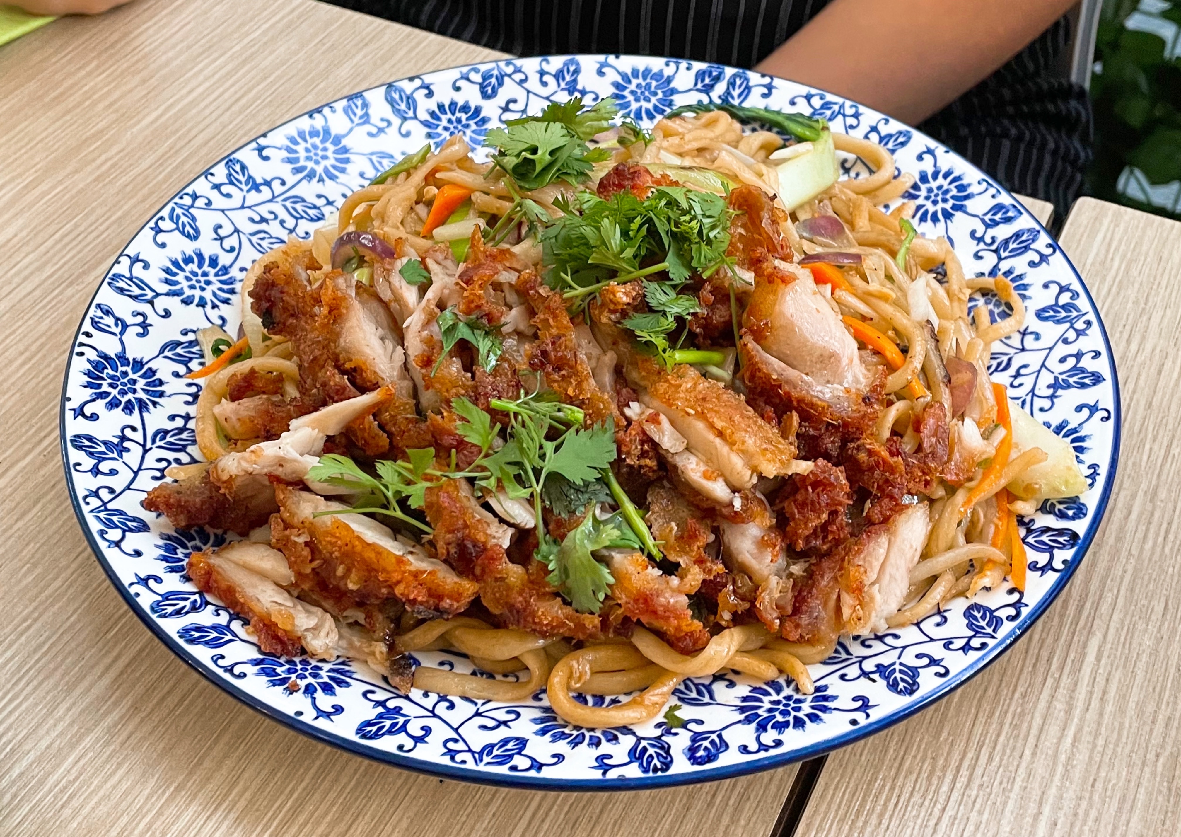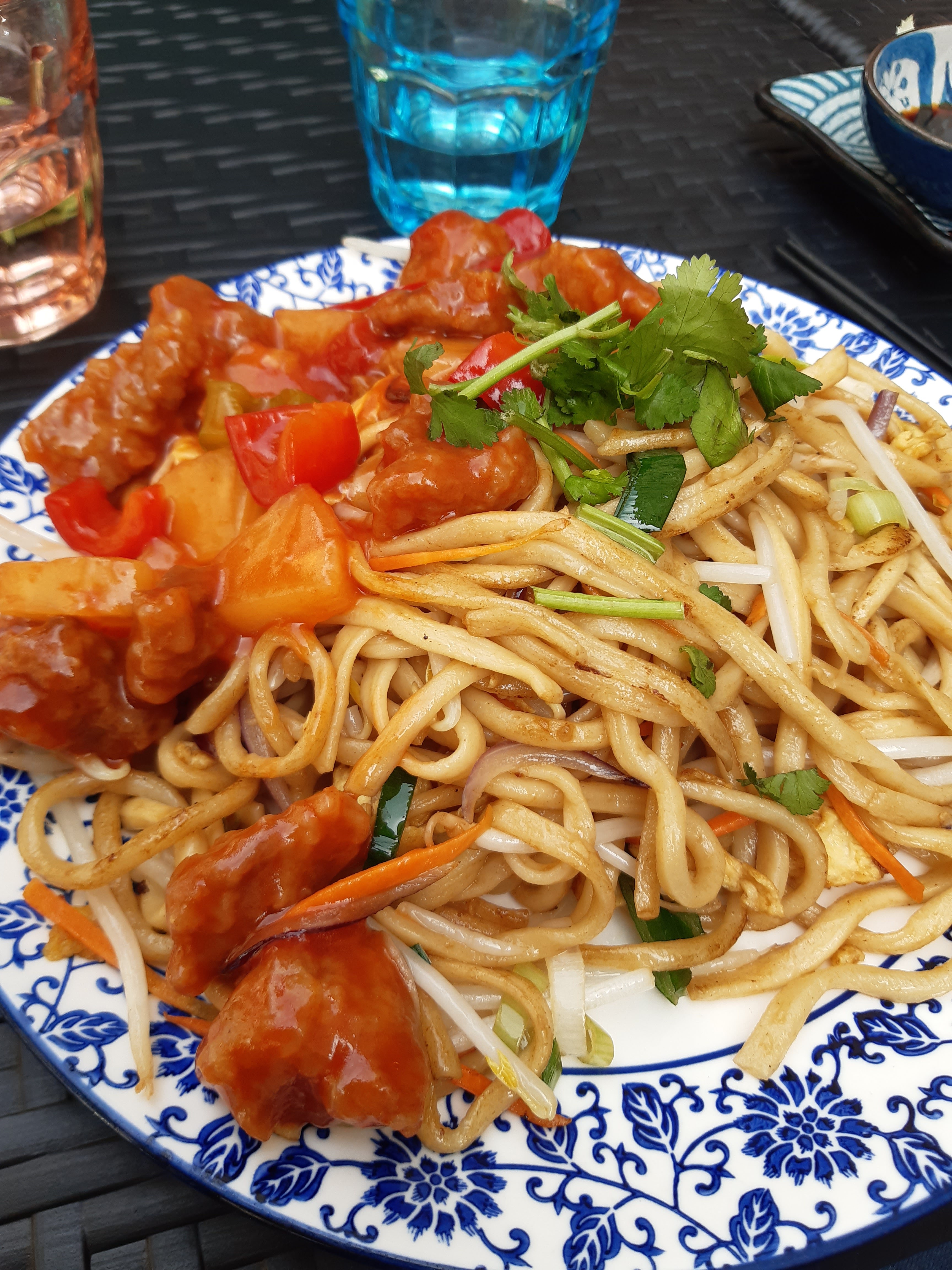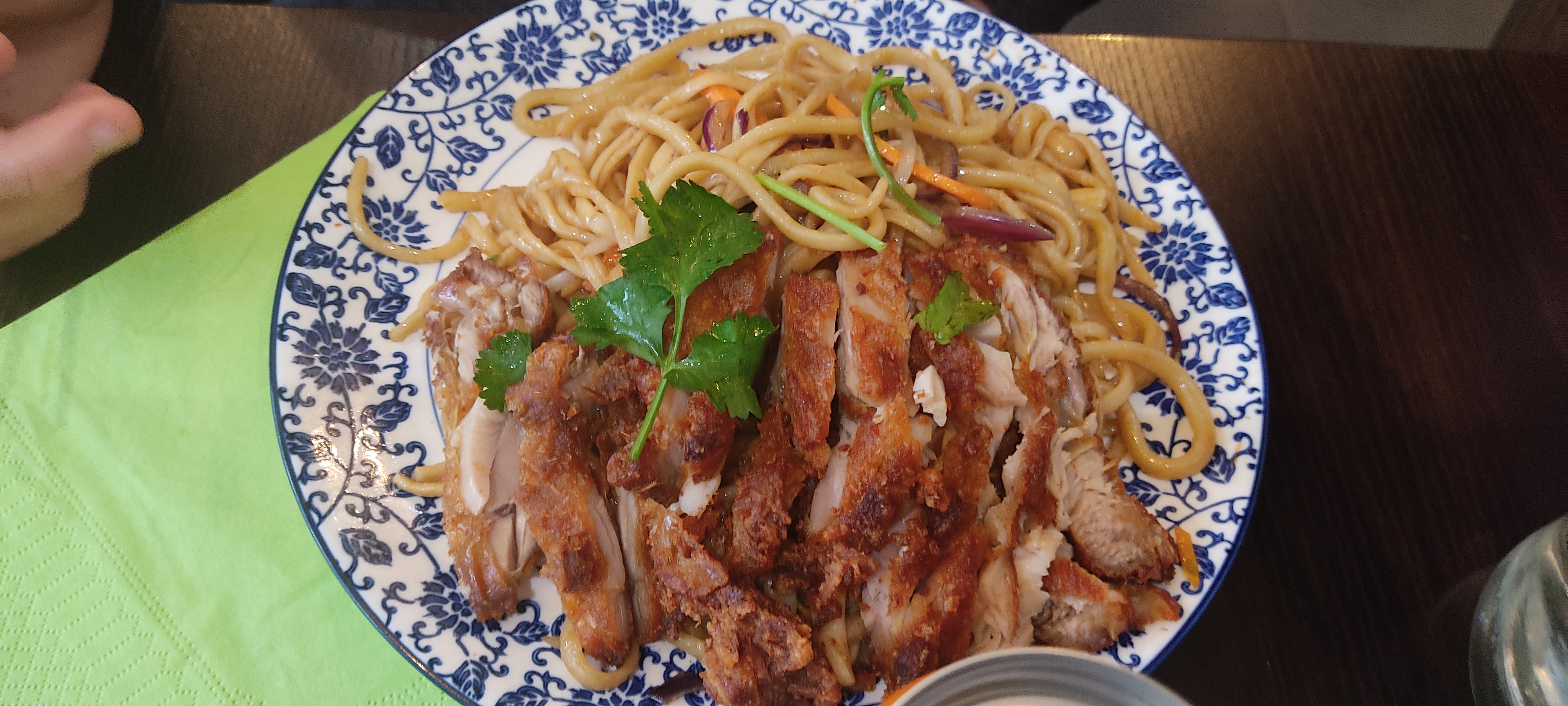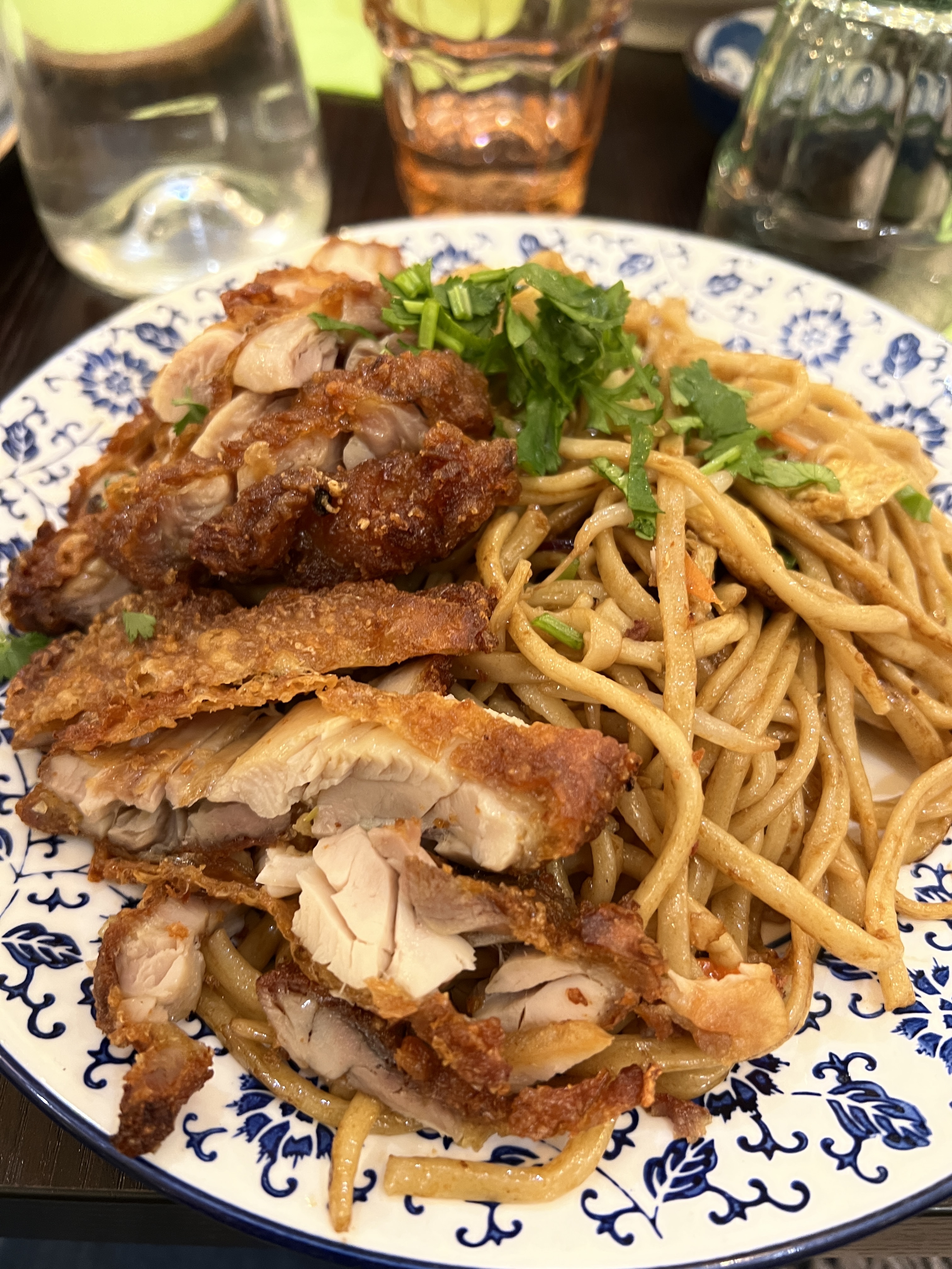 Les nouilles au poulet croustillant étaient excellentes. On voit que c’est du fait maison. Je recommande.