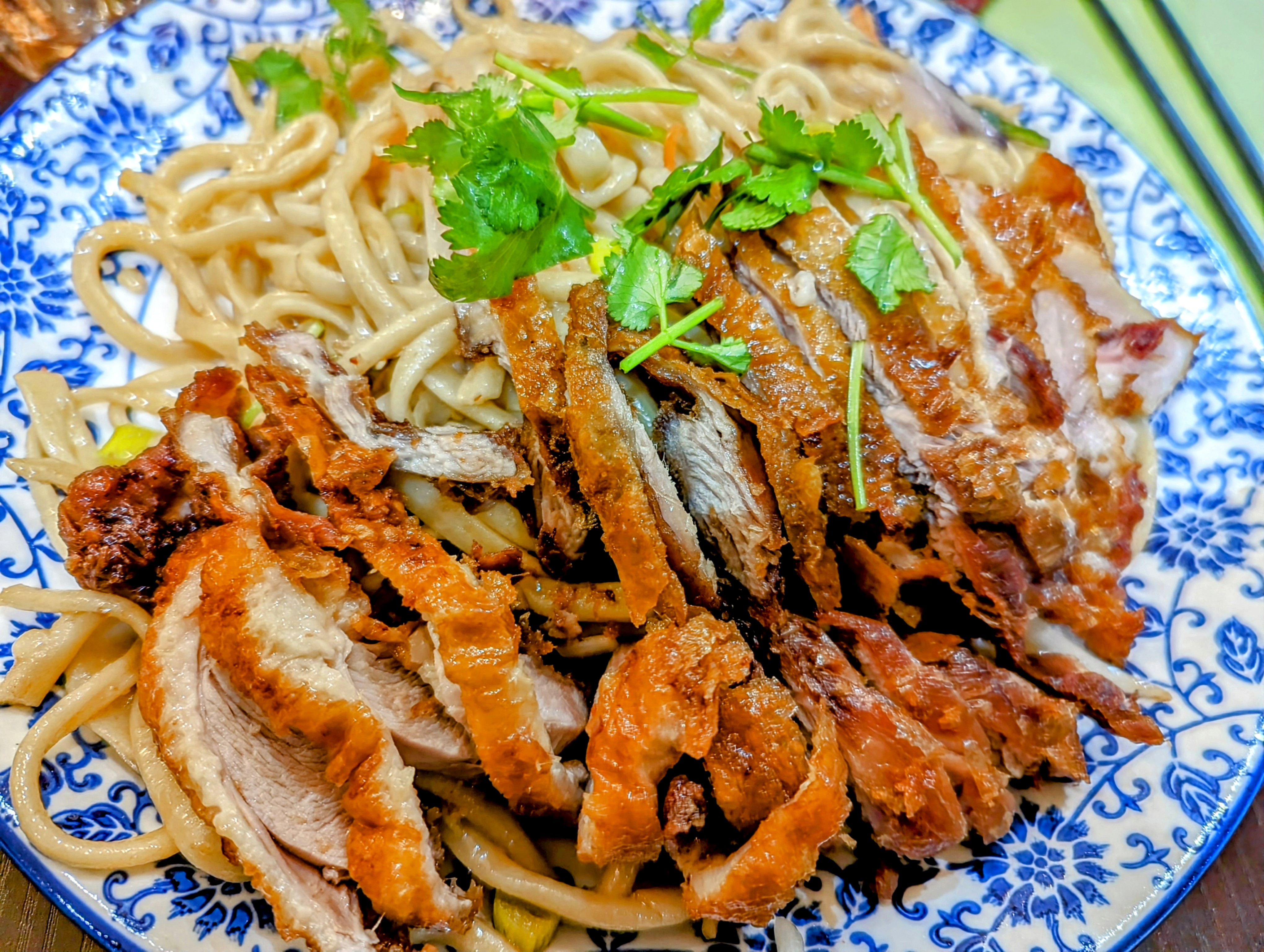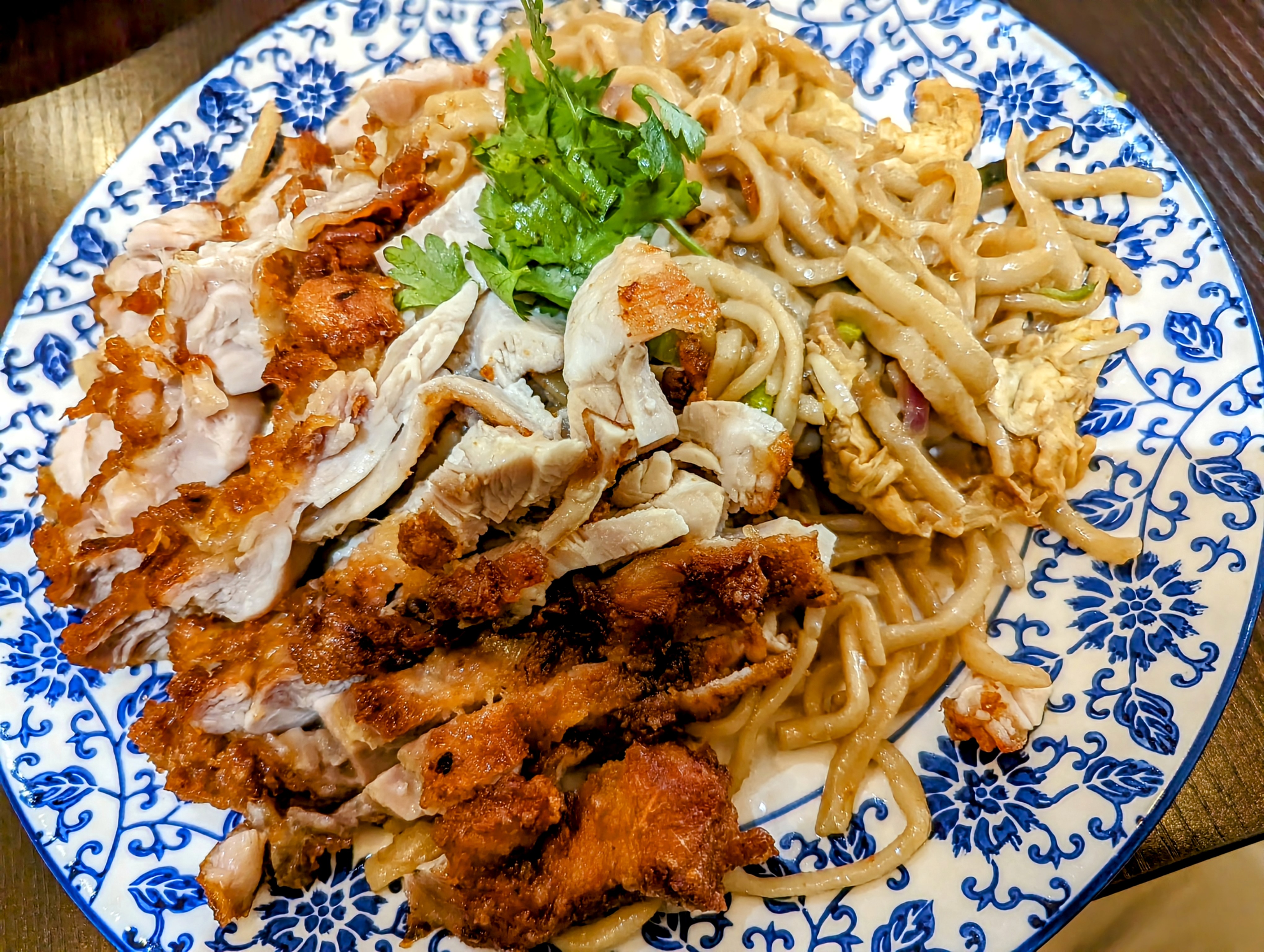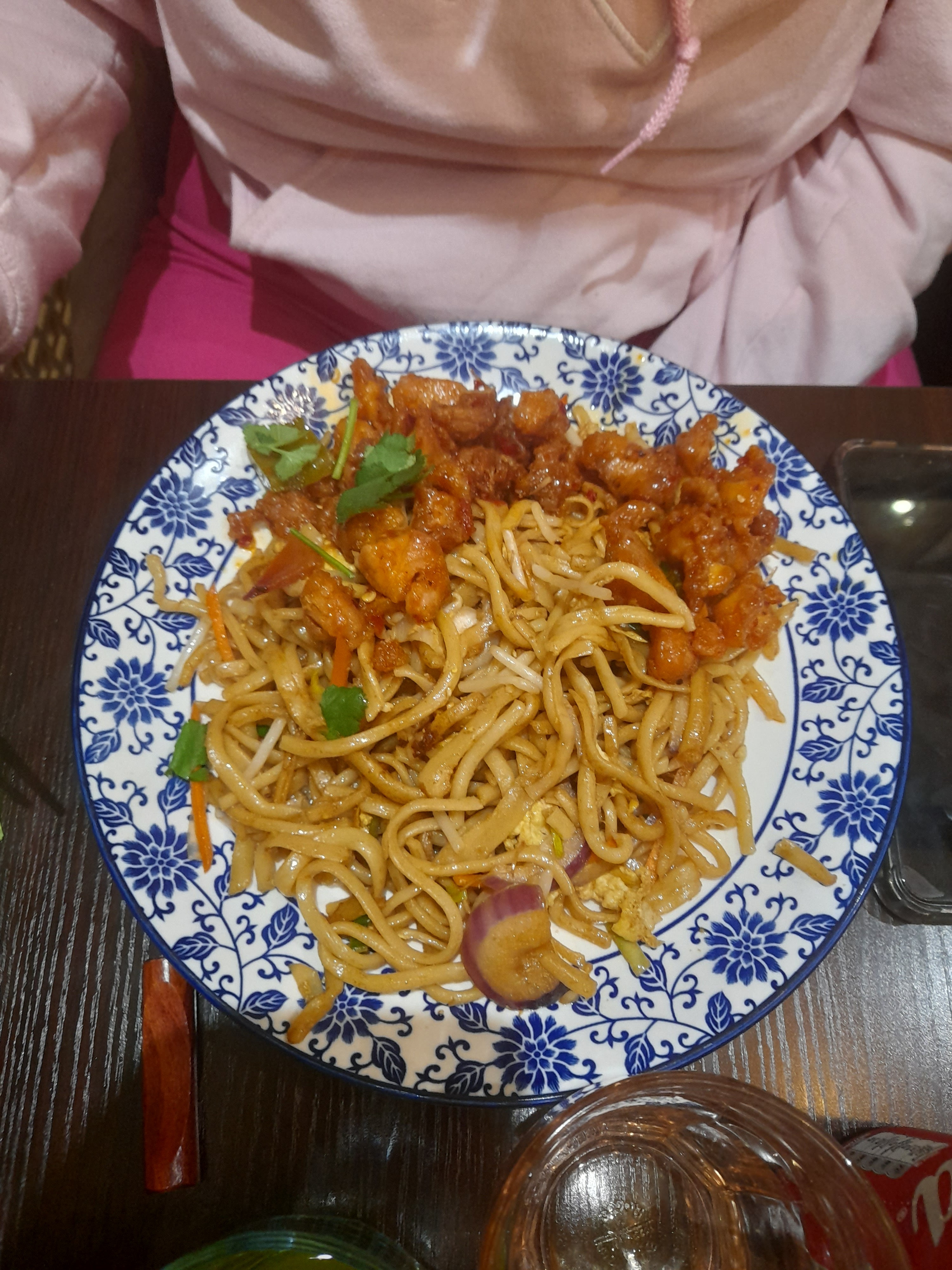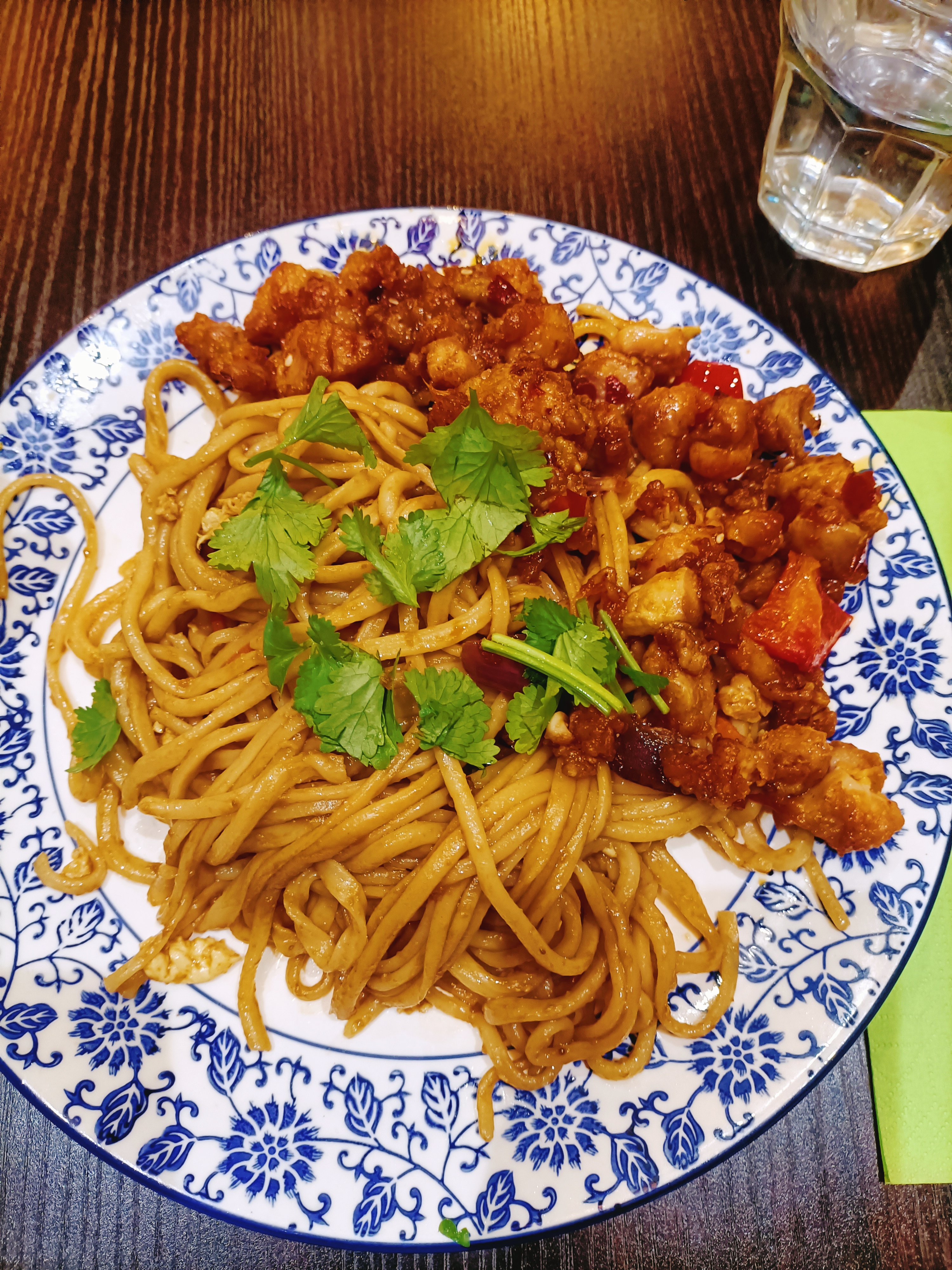 Les nouilles au poulet croustillant étaient excellentes. On voit que c’est du fait maison. Je recommande.