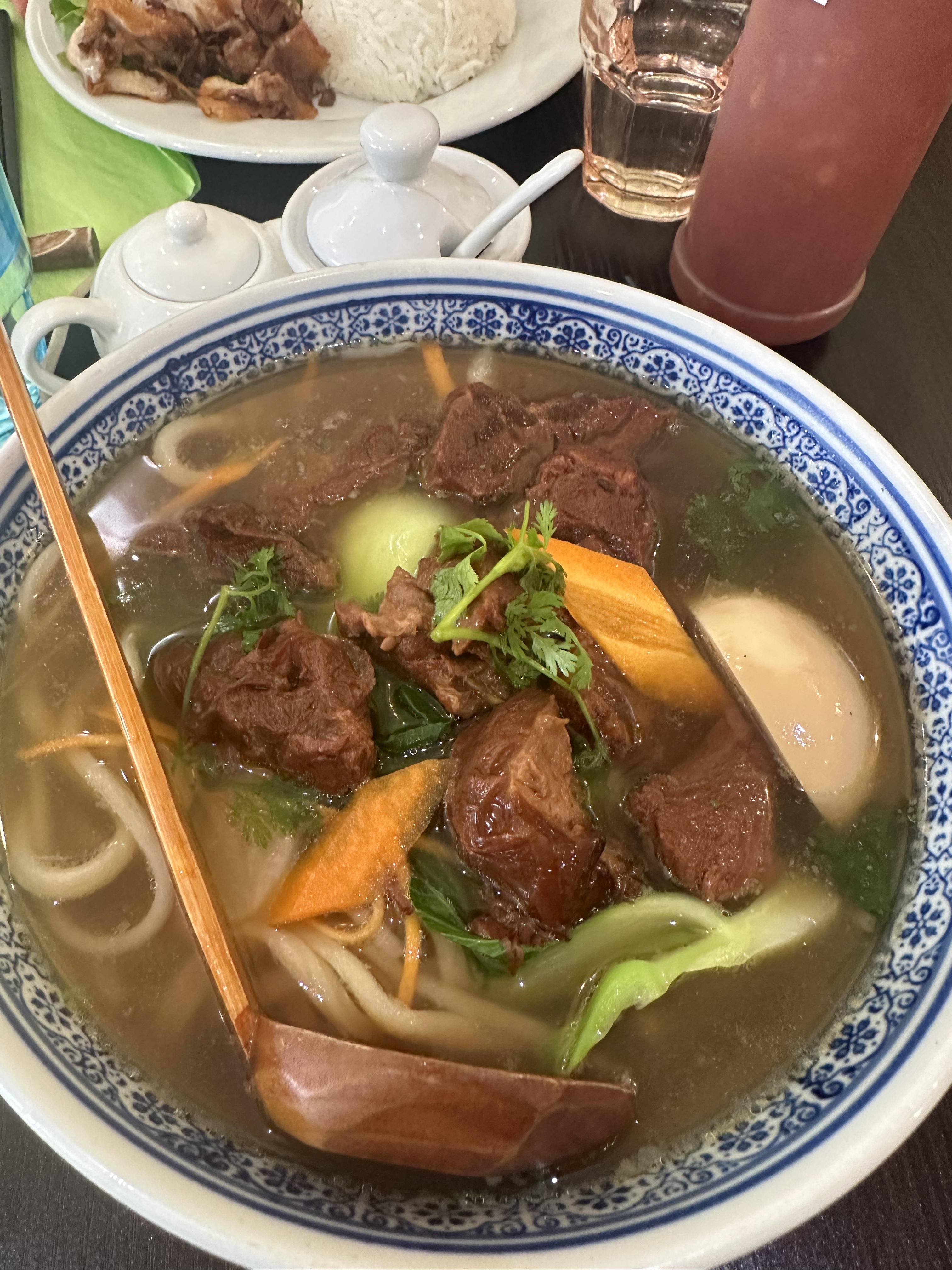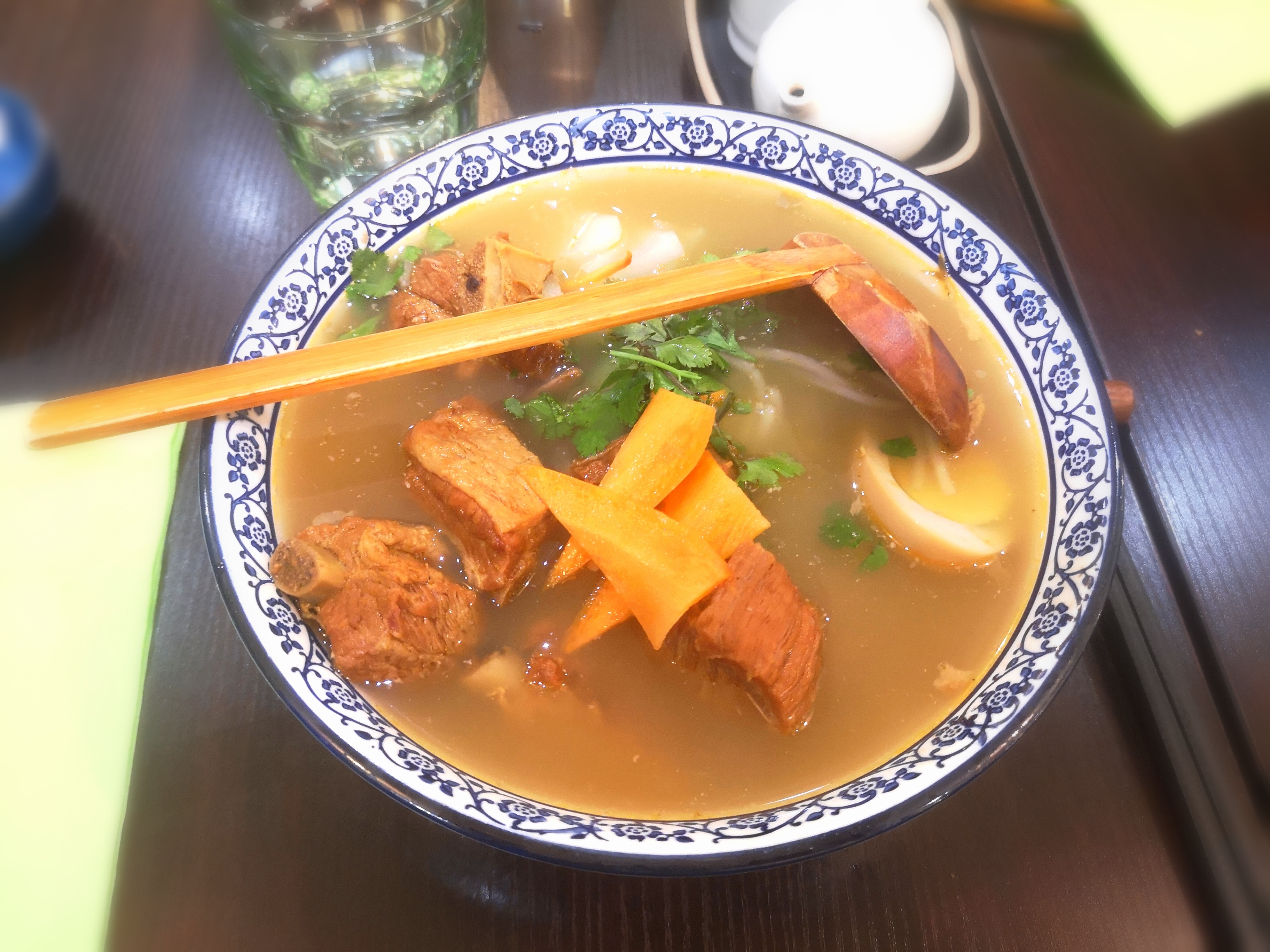 Nouilles sautées au boeuf braisé savoureuses (j’avais moins aimé la soupe de nouilles bœuf), le service impeccable et d’une rapidité impressionnante sur la pause dej !