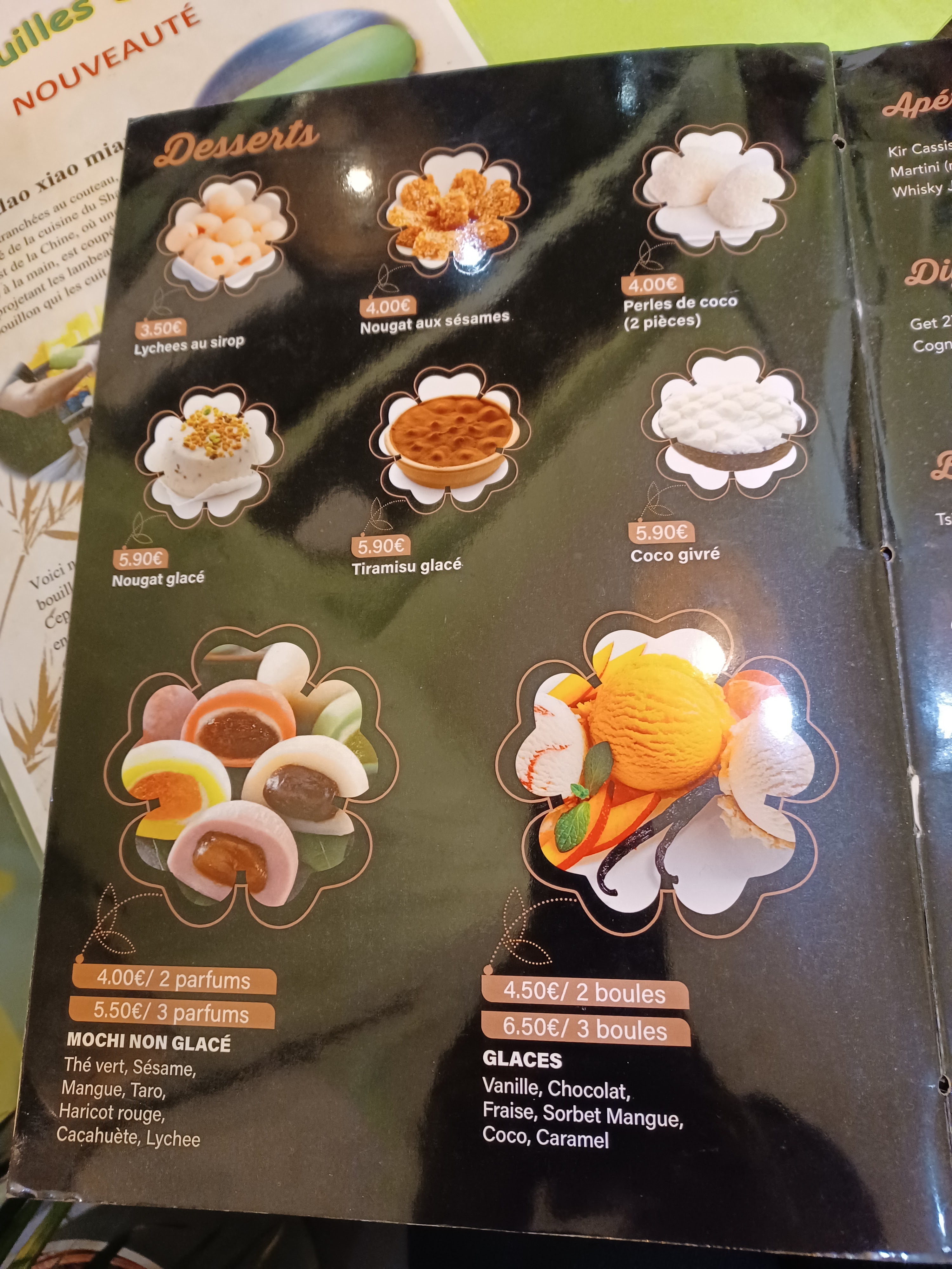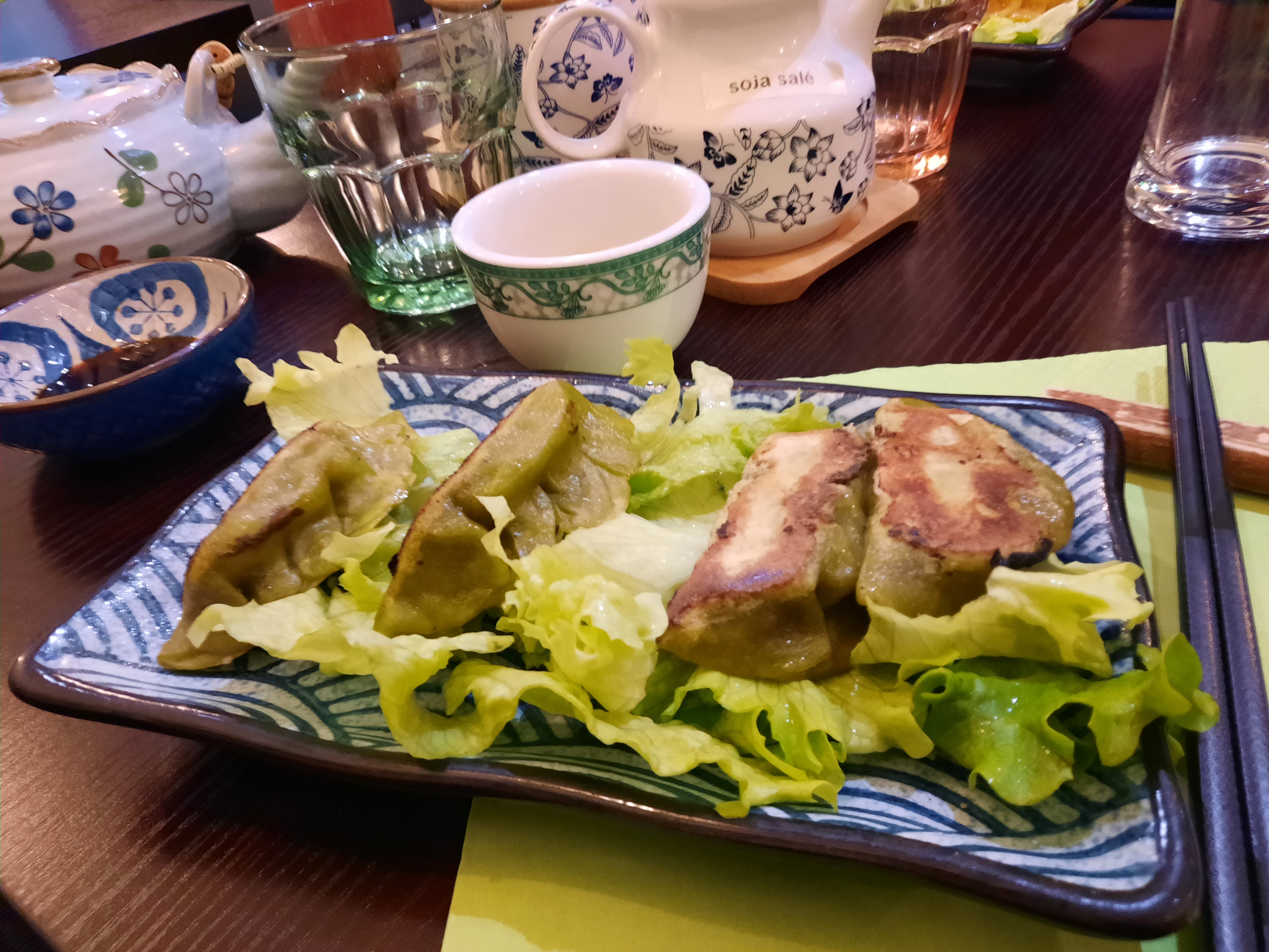 Bon dîner entrée plat dessert à prix raisonnable. Raviolis végétarien. Soupe de nouille verte au bœuf. Et mochis en dessert au sakura et thé macha. Agréable et goûteux. Bonne ambiance et bon service. C'était parfait. Merci et à bientôt