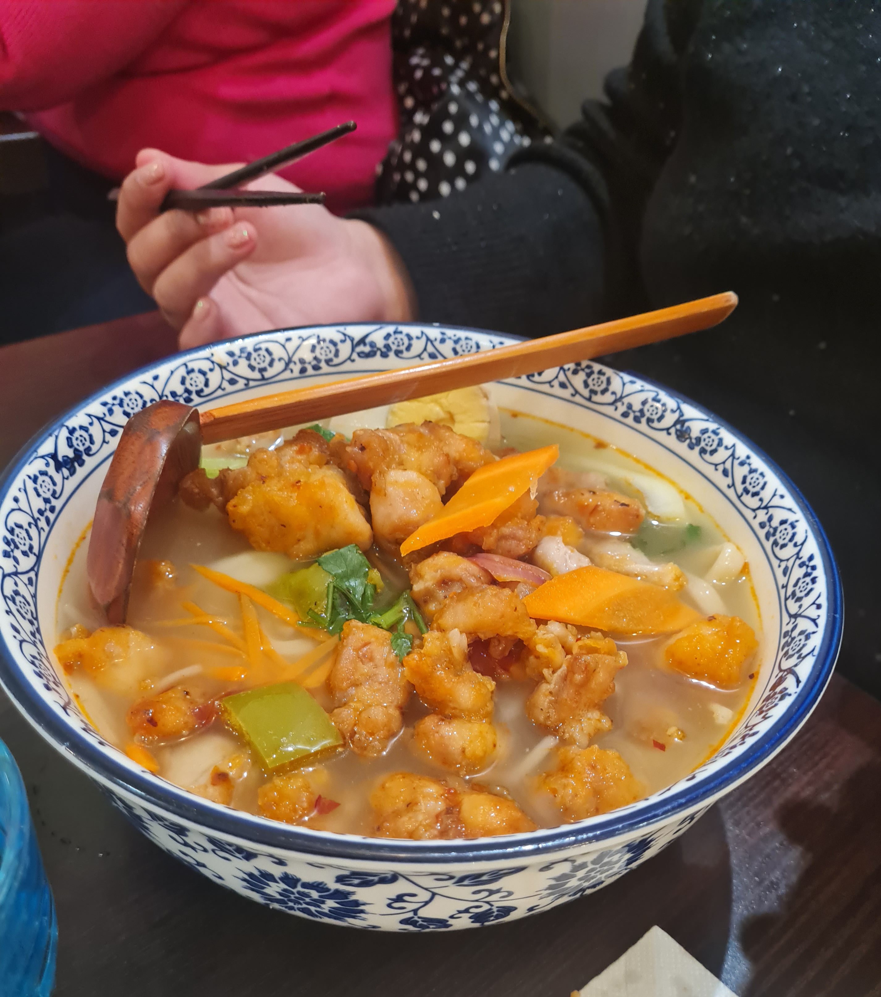 J’ai adoré ! Les nouilles étaient délicieuses, les raviolis aussi, ils sont faits maison et ça ressens au goût. Le poulet était excellent, les légumes aussi et la soupe aussi. Le service est sans reproche, rapide et les serveurs sont à l’écoute et bienveillants. Rien à redire au niveau de la propreté non plus. Très bonne surprise !