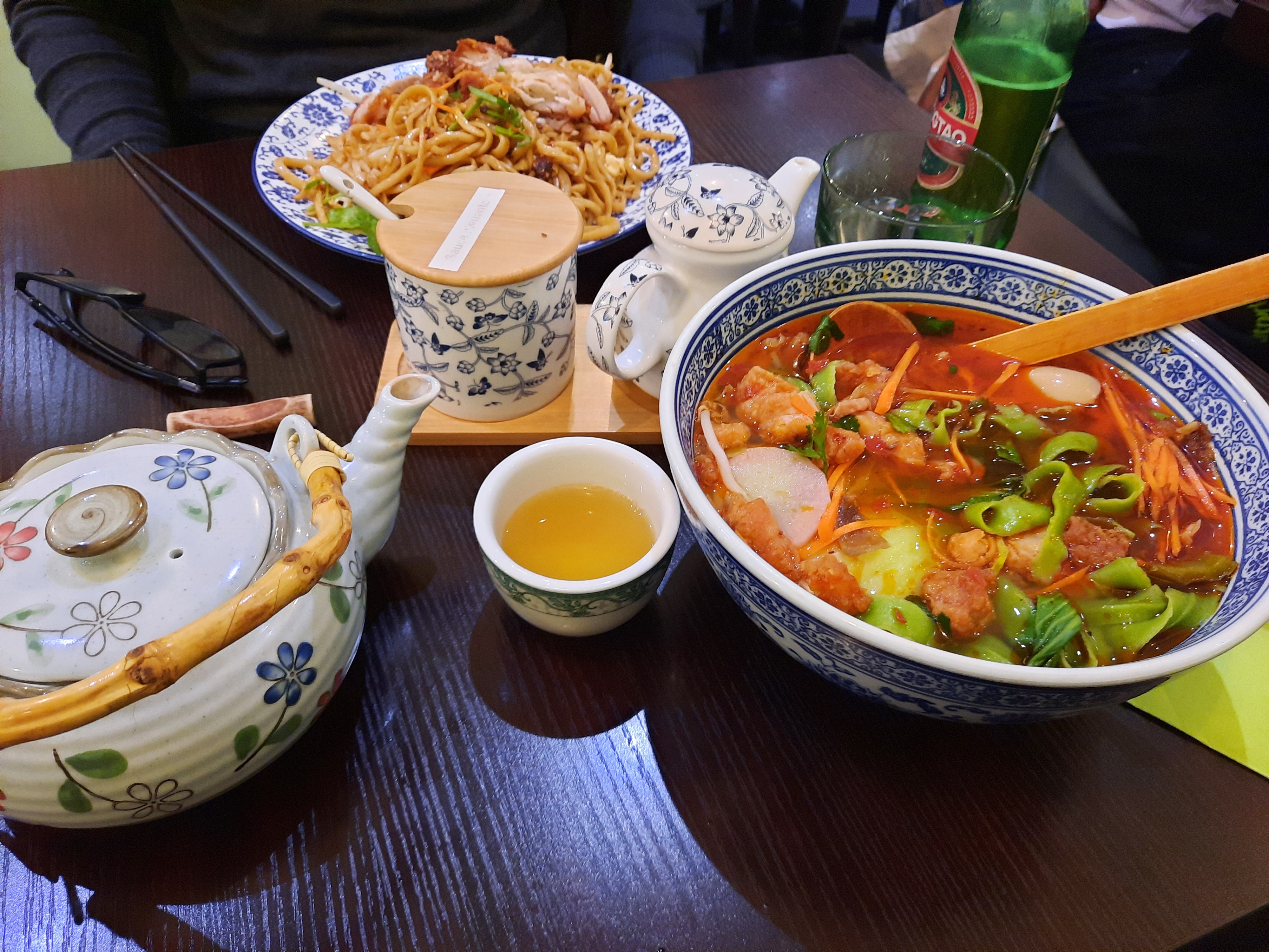 Cuisine excellente et très copieuse ! Les nouilles sautées (maison !) au canard étaient succulentes (et même encore meilleures apres avoir rajouté un goutte de sauce soja salée). Allez-y les yeux fermés !