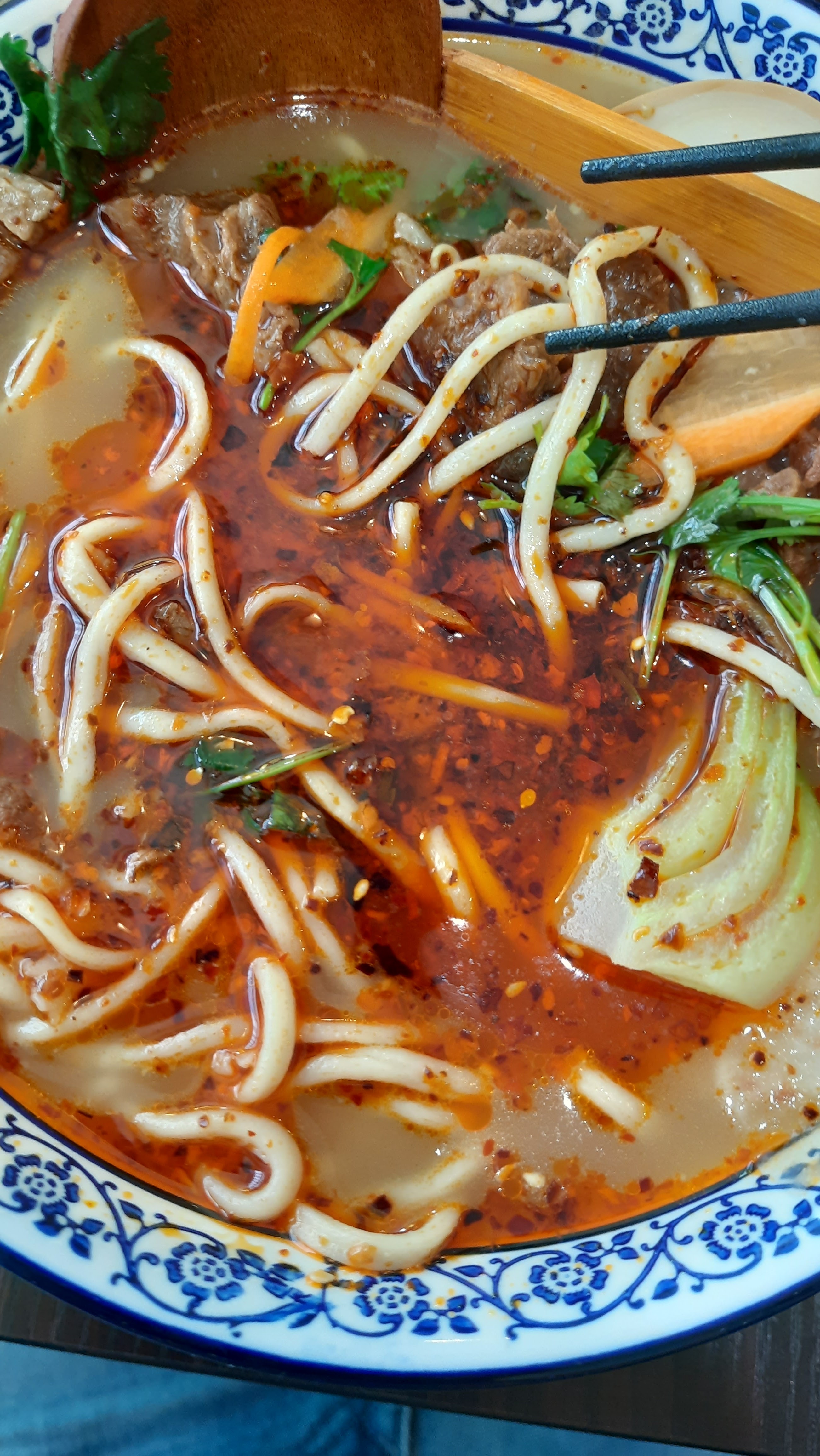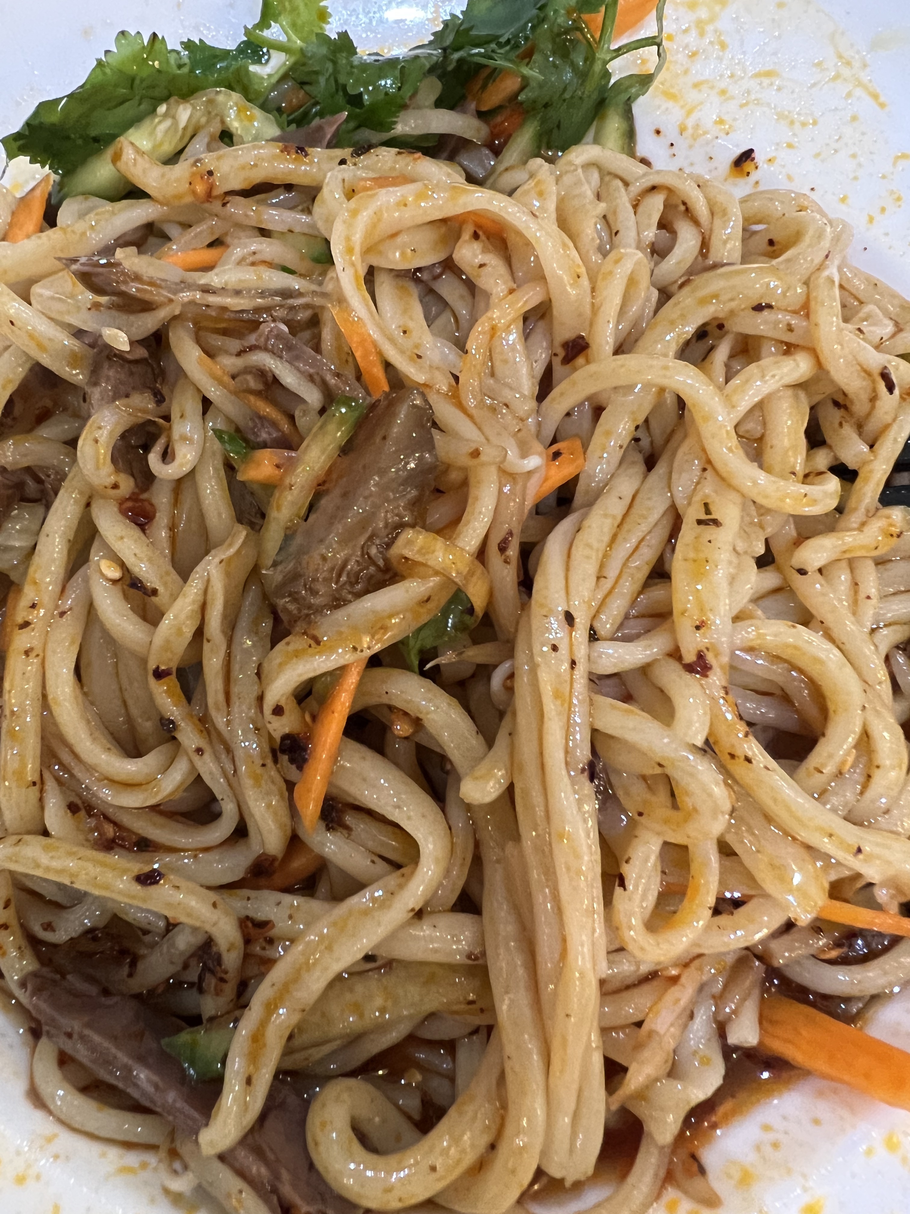 Des nouilles excellentes avec de la viande bien tendre et bien assaisonnée. Le seul bémol était que le plat, censé être pimenté de base, ne l'était pas et on nous donne juste la sauce pimentée à côté pour le pimenter nous même alors qu'un niveau de piment suggéré par le chef aurait été mieux