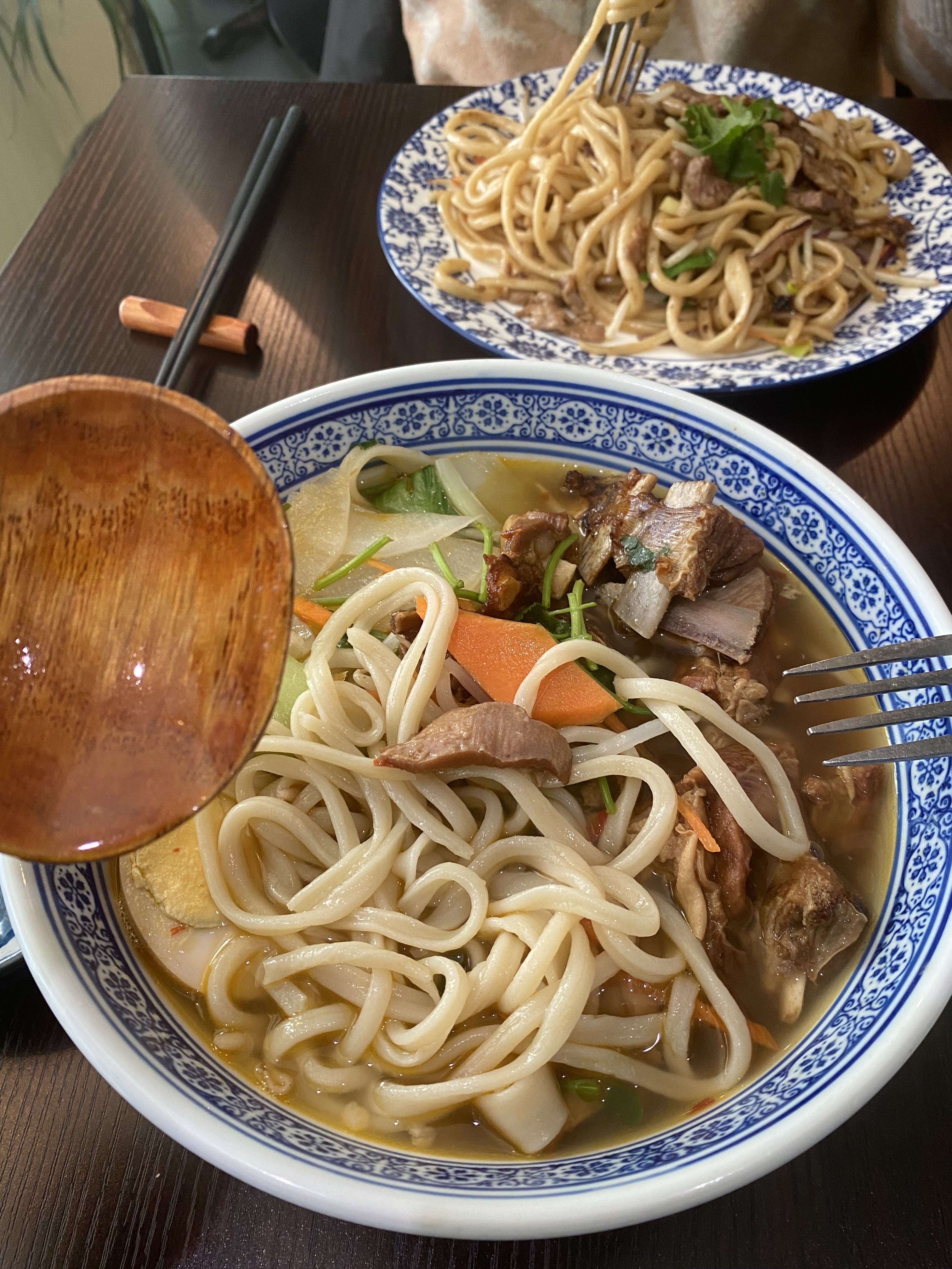 Nouilles faites maison ça se sent La soupe de nouilles au poulet et celle au canard laqué sont excellentes Accueil sympathique
