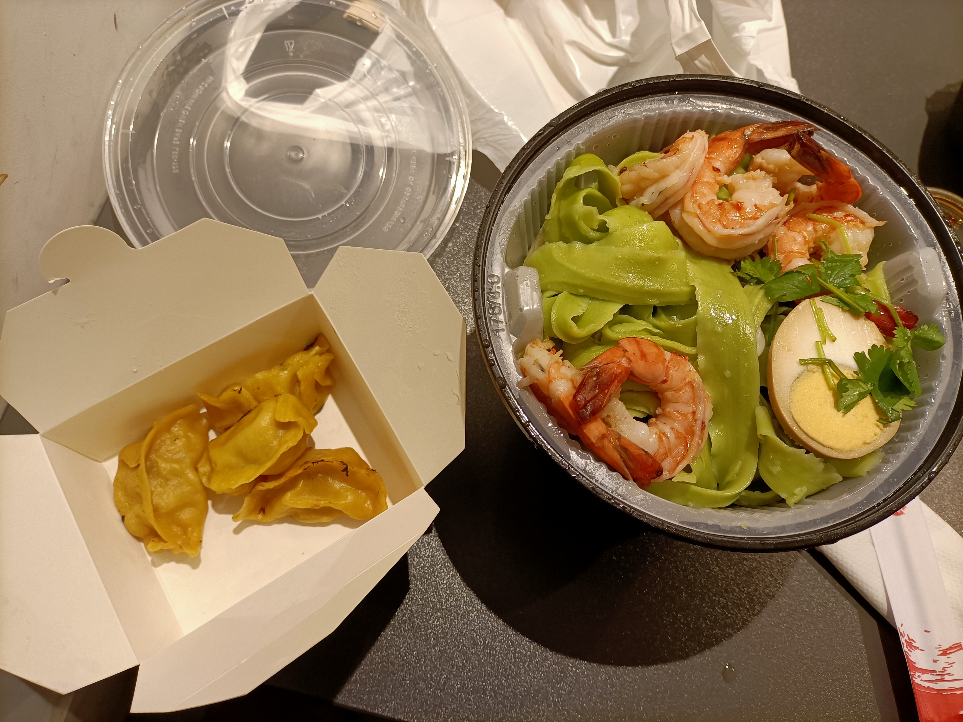Très bonne expérience dans l'ensemble Les nouilles sautées étaient très bonnes +1 pour les nems aux crevettes qui étaient excellents ! Les raviolis poulet crevettes manquaient un petit peu de goût mais j'ai quand même apprécié. Dommage qu'il n'y ait pas des raviolis aux crevettes exclusivement.
