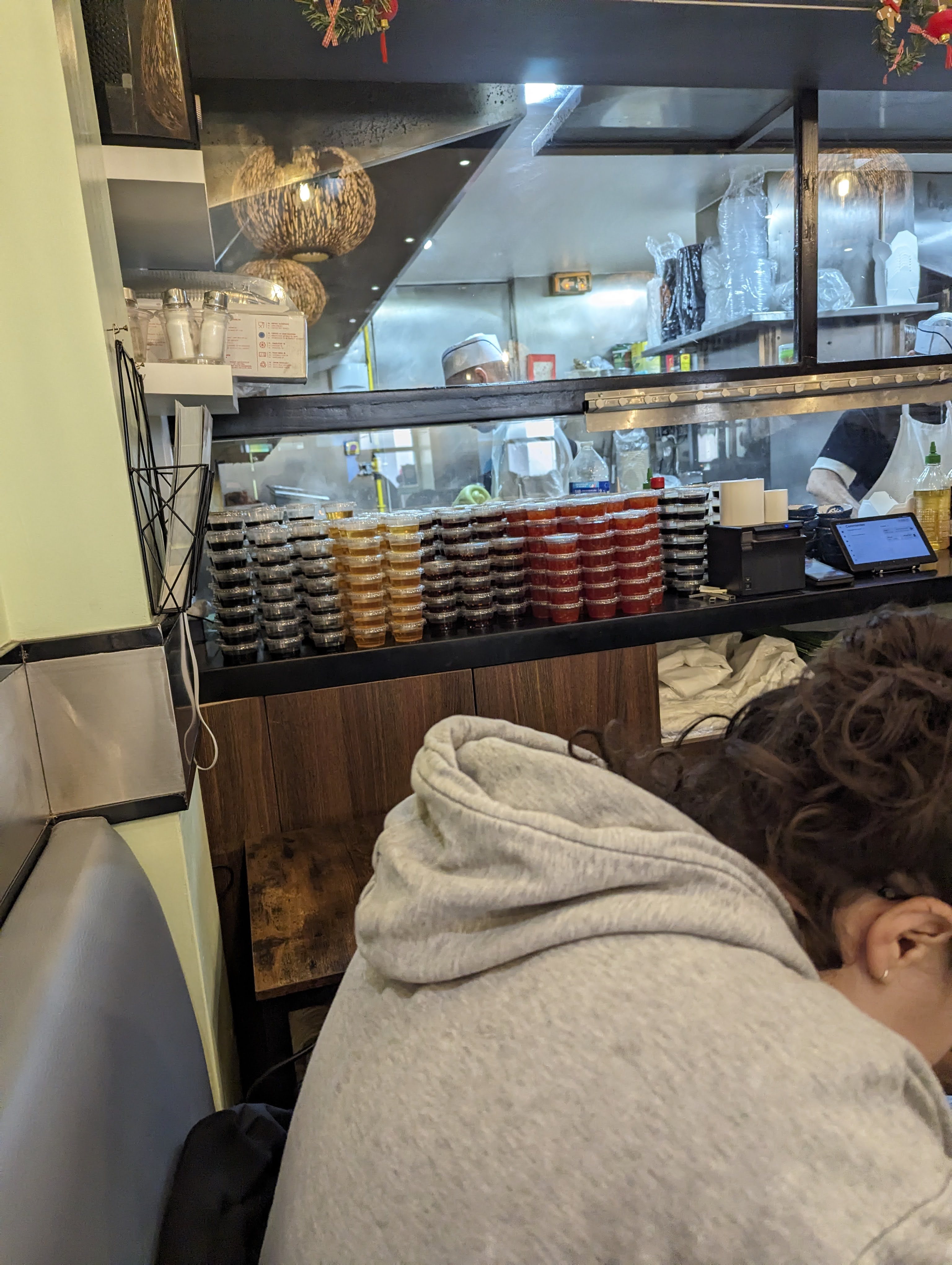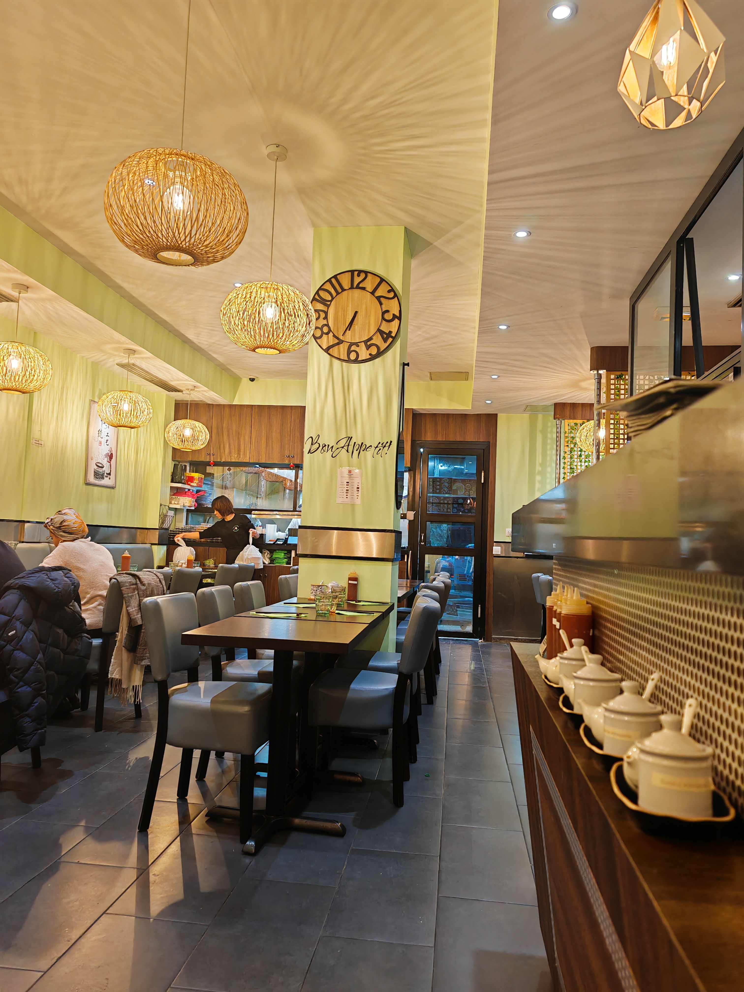 Pour un samedi soir, c'est un petit restaurant très chaleureux avec un personnel adorable et à l'écoute. Une vue impressionnante sur les chefs pour la création des nouilles faits maisons, les repas arrivent étonnamment vite et sont très bons pour un prix généreux sur Paris ! Je n'hésiterai pas à y retourner, je recommande !