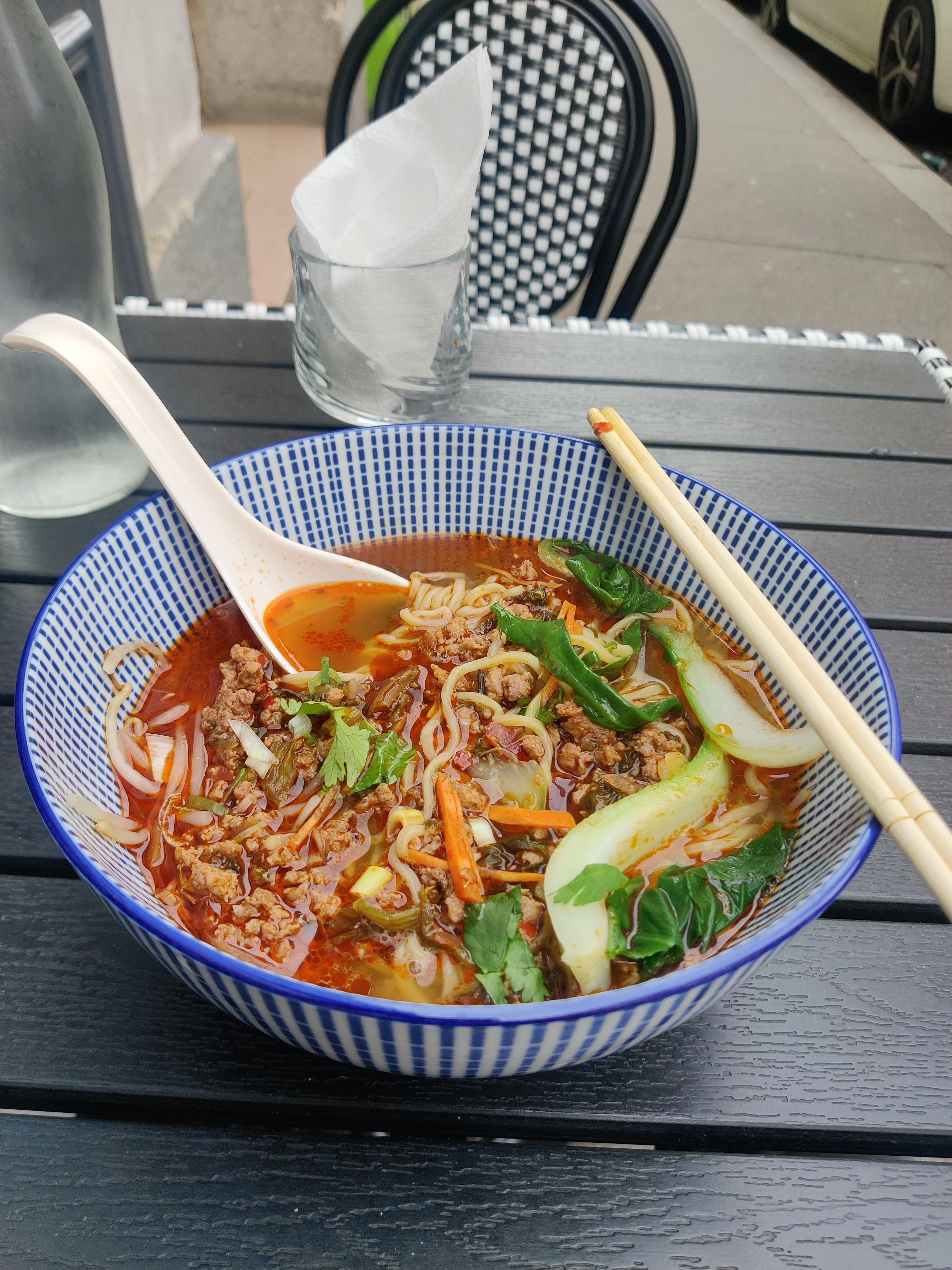 Excellente soupe de nouilles au bœuf, le bouillon est riche, le bœuf est tendre, je le recommande vraiment ! Assez bon marché pour Paris