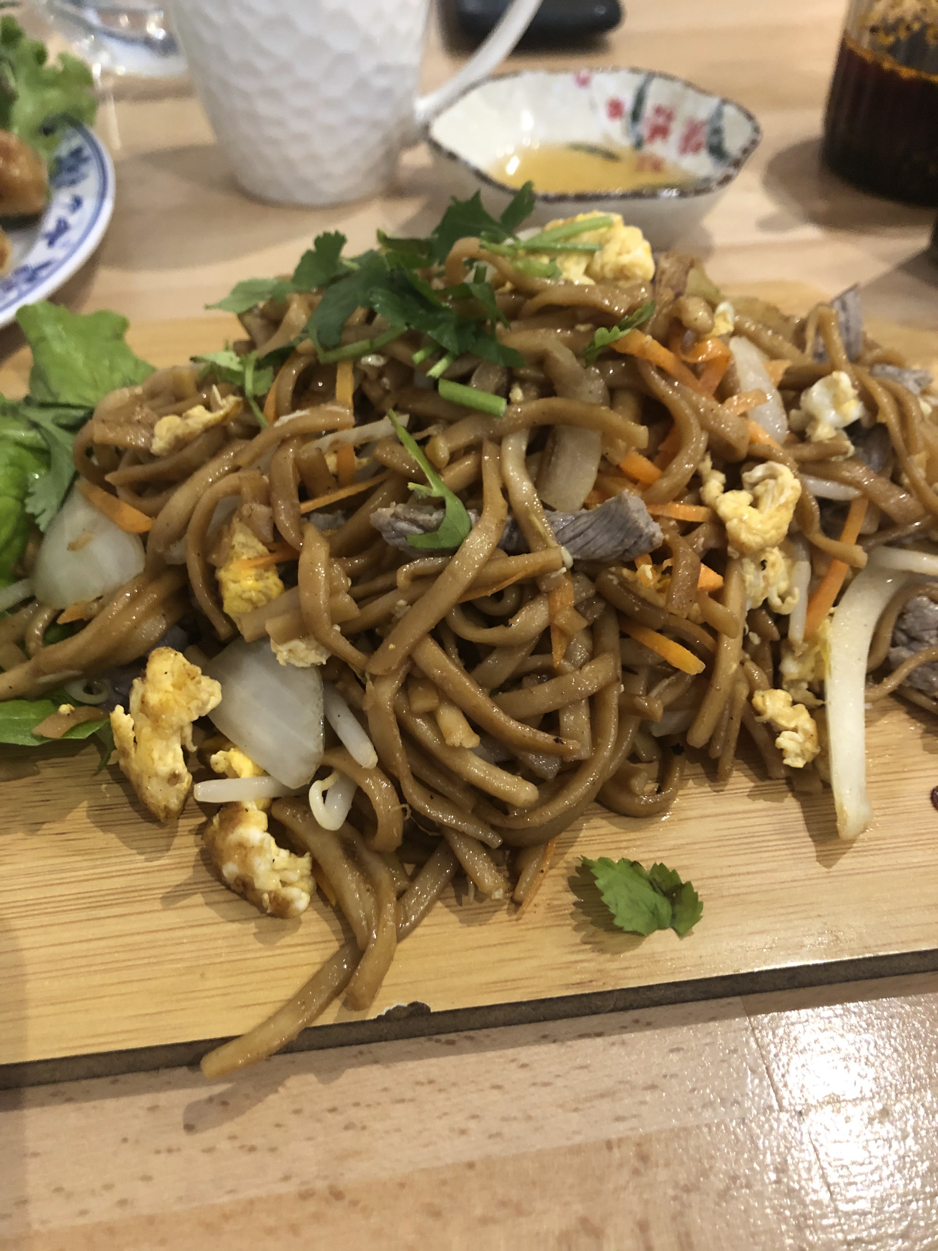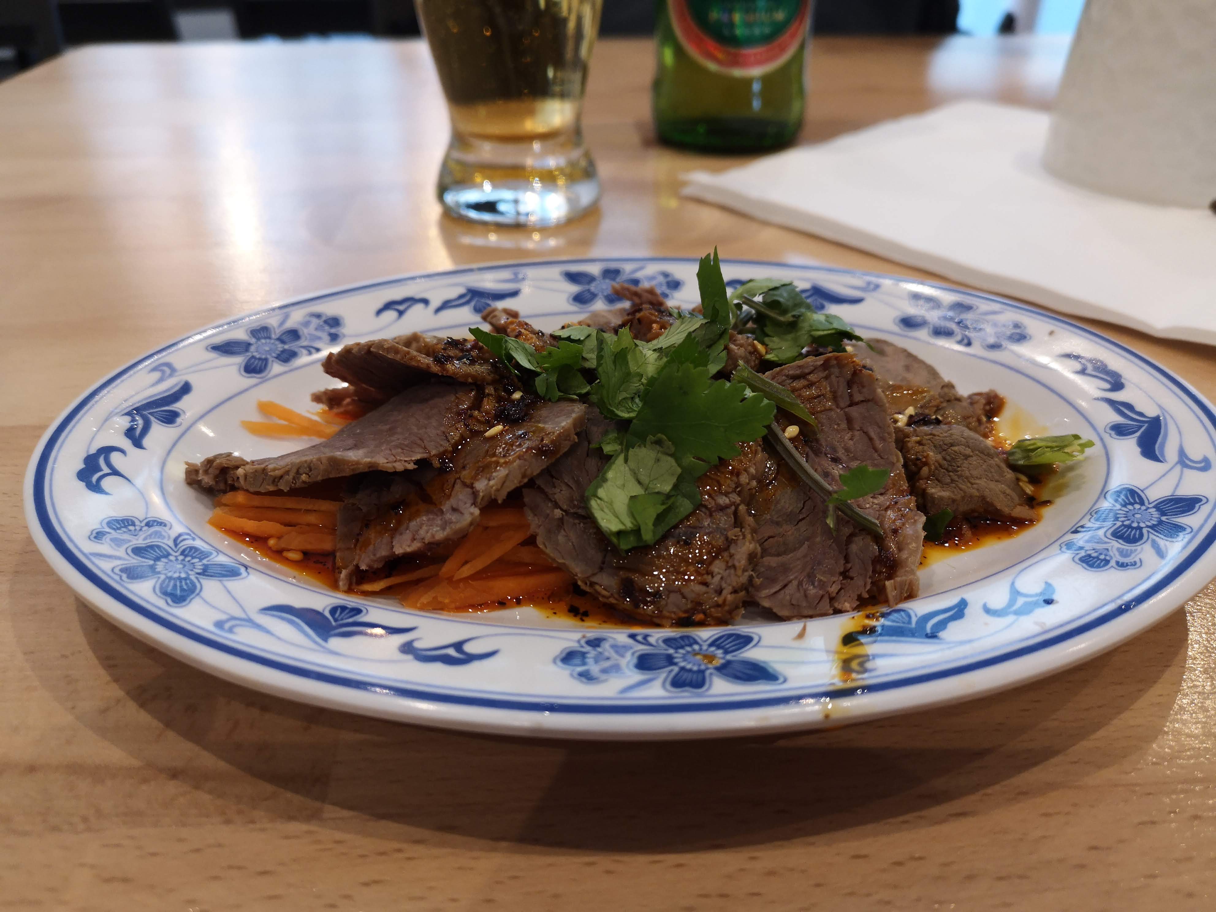 Juste génial ! J'ai eu des boulettes (soupe) et j'en ai demandé plus (ceux frits). Semble être entièrement fait à la main (l'entrée de bœuf était plus sèche que d'habitude et semble être destinée à la base de soupe). Je recommanderais plutôt le poulet comme entrée. Aussi, j'ai vraiment aimé l'espace et le service.