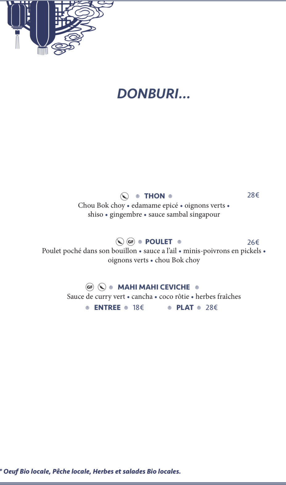 Nicky Merci pour l'avis que nous partagerons certainement avec notre Chef sur la taille des portions d'Udon, quant aux extras, tout comme au Japon, vous pouvez commander n'importe quoi en plus dans votre bol de Ramen etc. Quant aux Eddys, je l'adore aussi , mais il serait exagéré de les considérer comme des saveurs asiatiques, car Eddy est un gars local et leur thème est français/créole. En termes de prix, nos plats principaux et nos applications sont à égalité avec eux et Black Ginger.